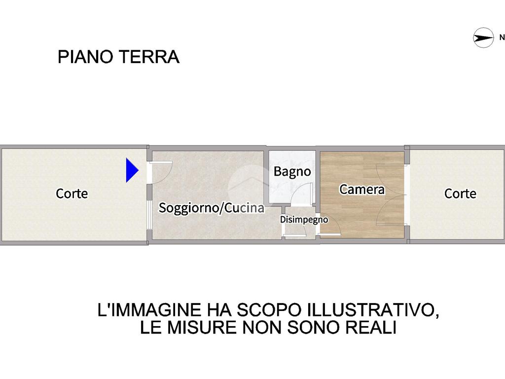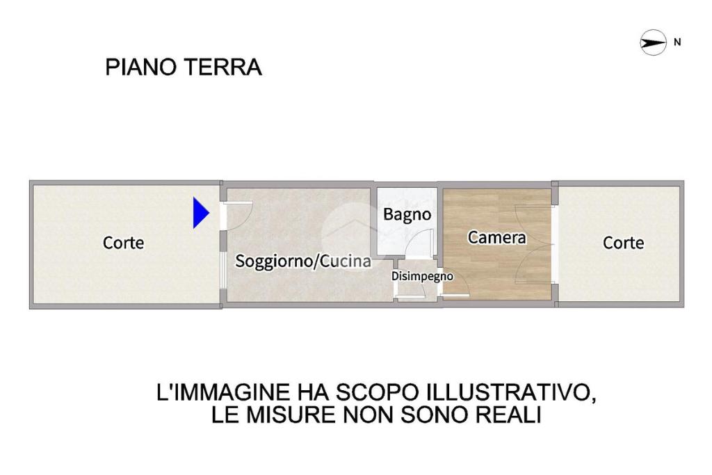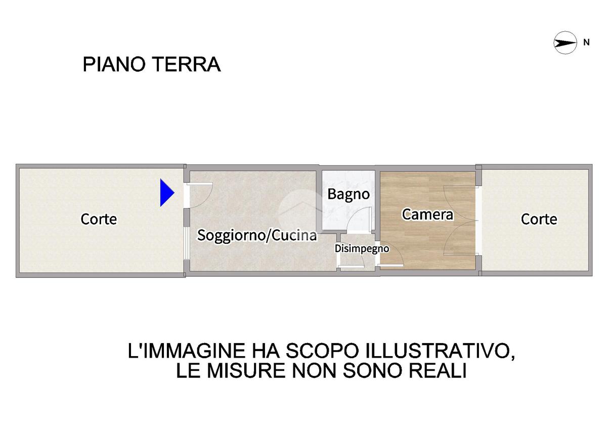 L’abitazione si compone di soggiorno con angolo cottura, camera matrimoniale e bagno con box doccia.