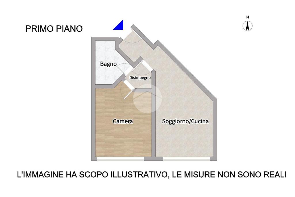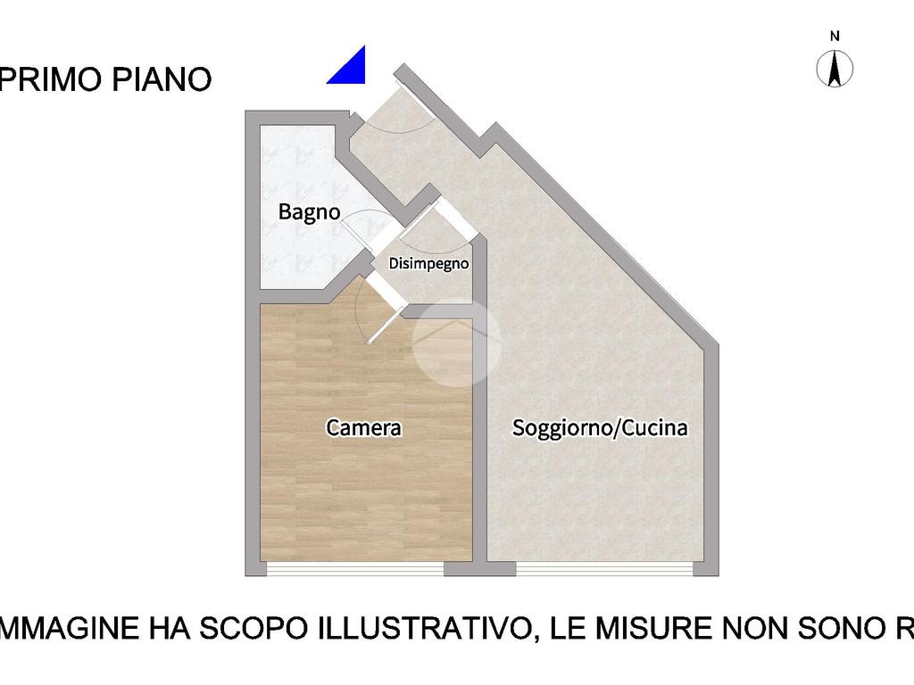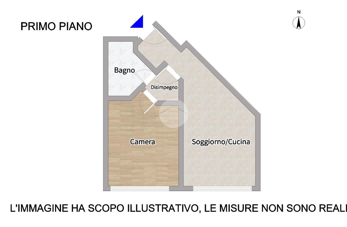 La soluzione si compone di ingresso su spazioso soggiorno con angolo cottura, camera da letto matrimoniale e bagno con box doccia.