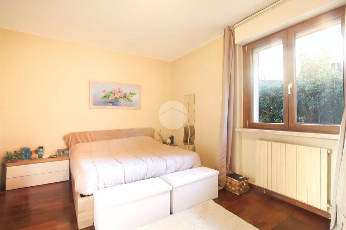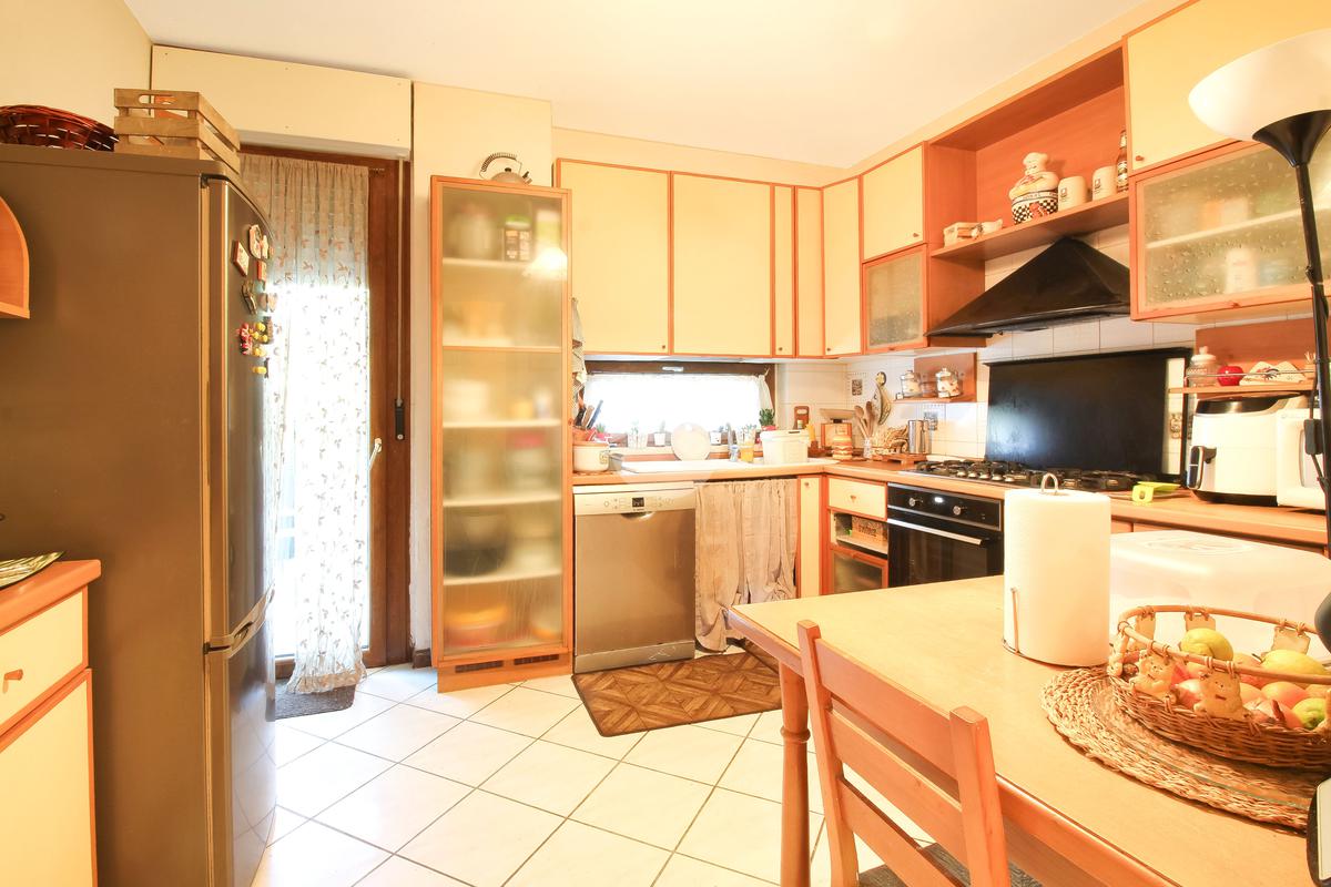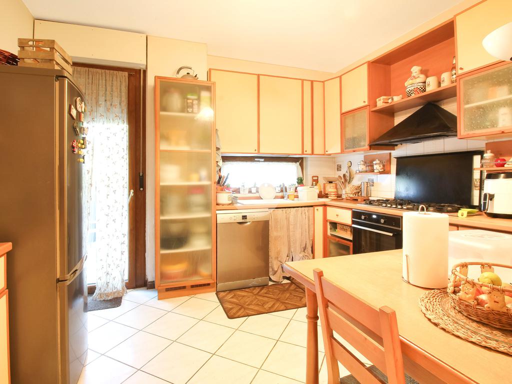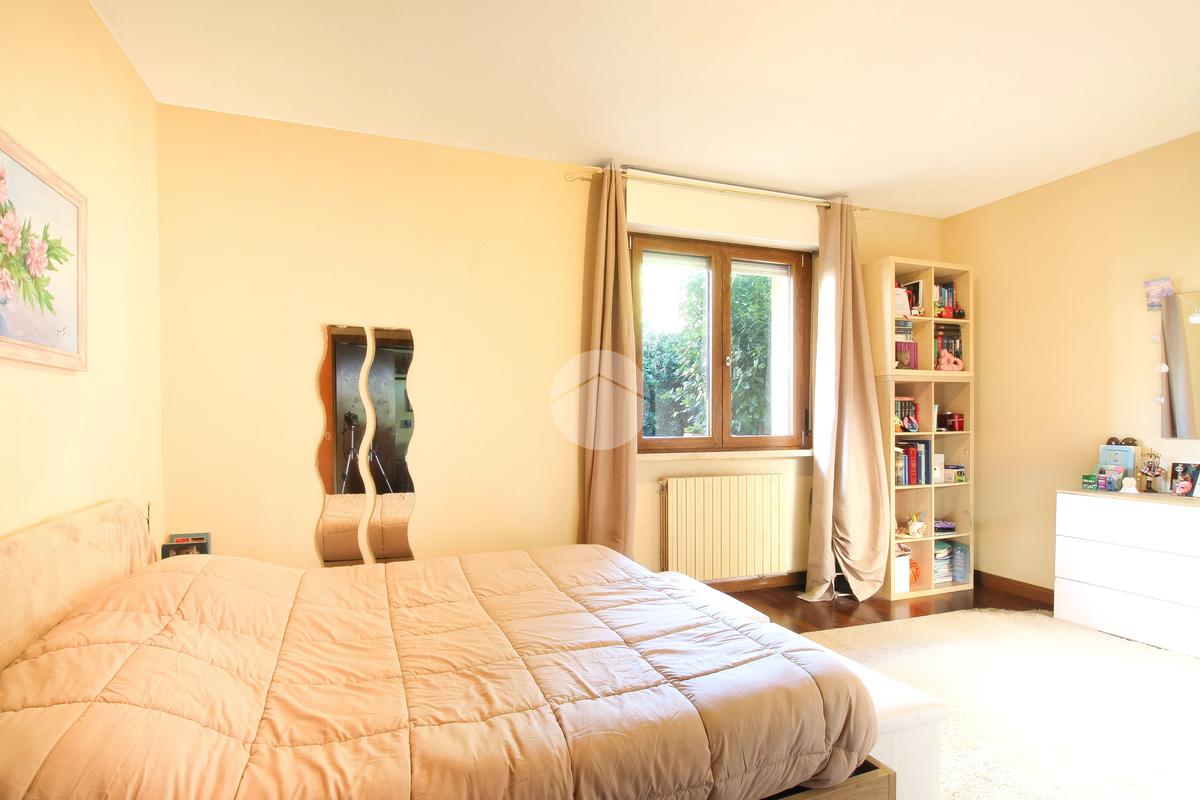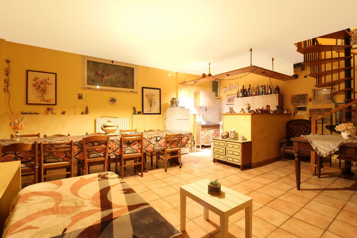 Una scala interna conduce al piano inferiore, dove troviamo una spaziosa taverna con cucina attrezzata e salottino, oltre a bagno con doccia e accesso diretto al box auto di 37 mq.