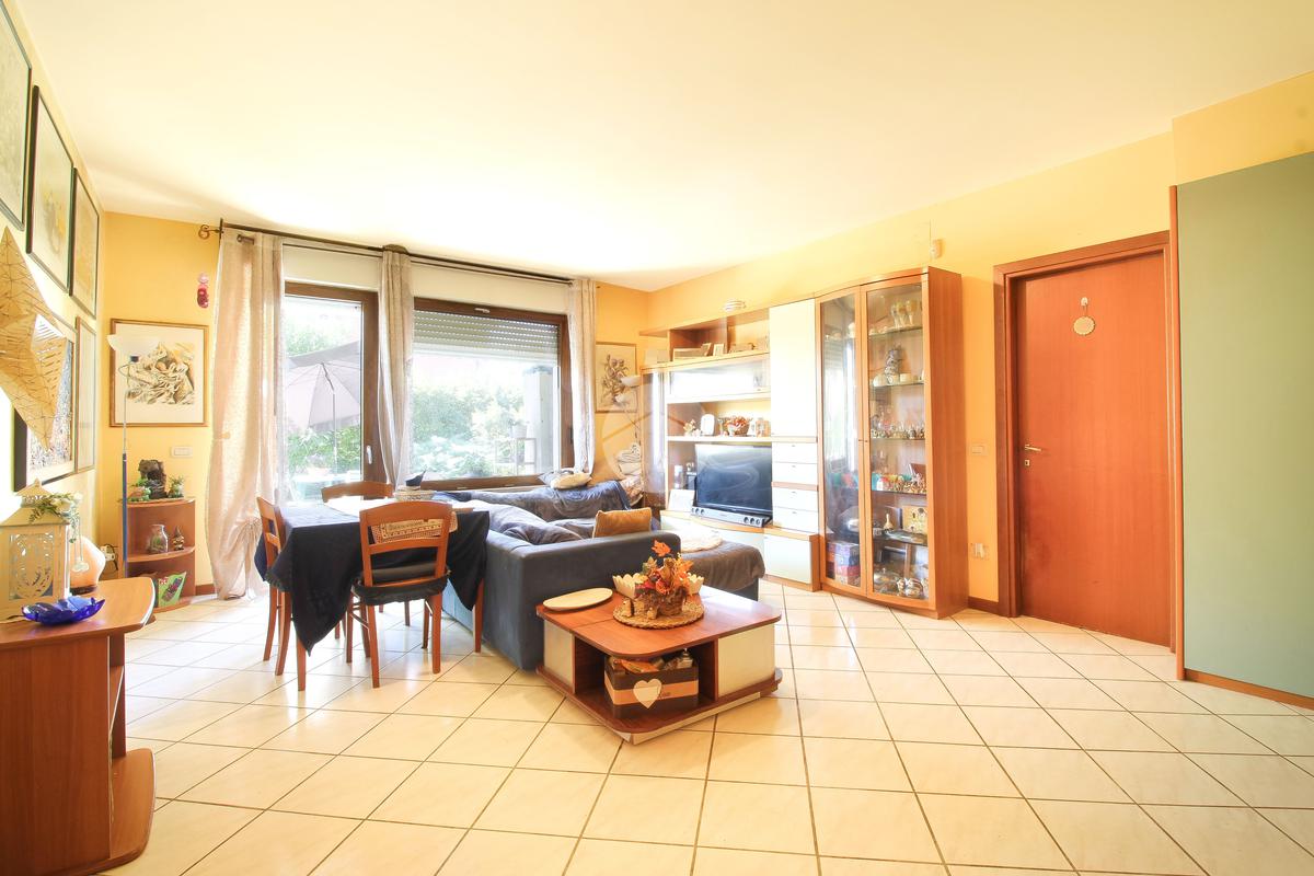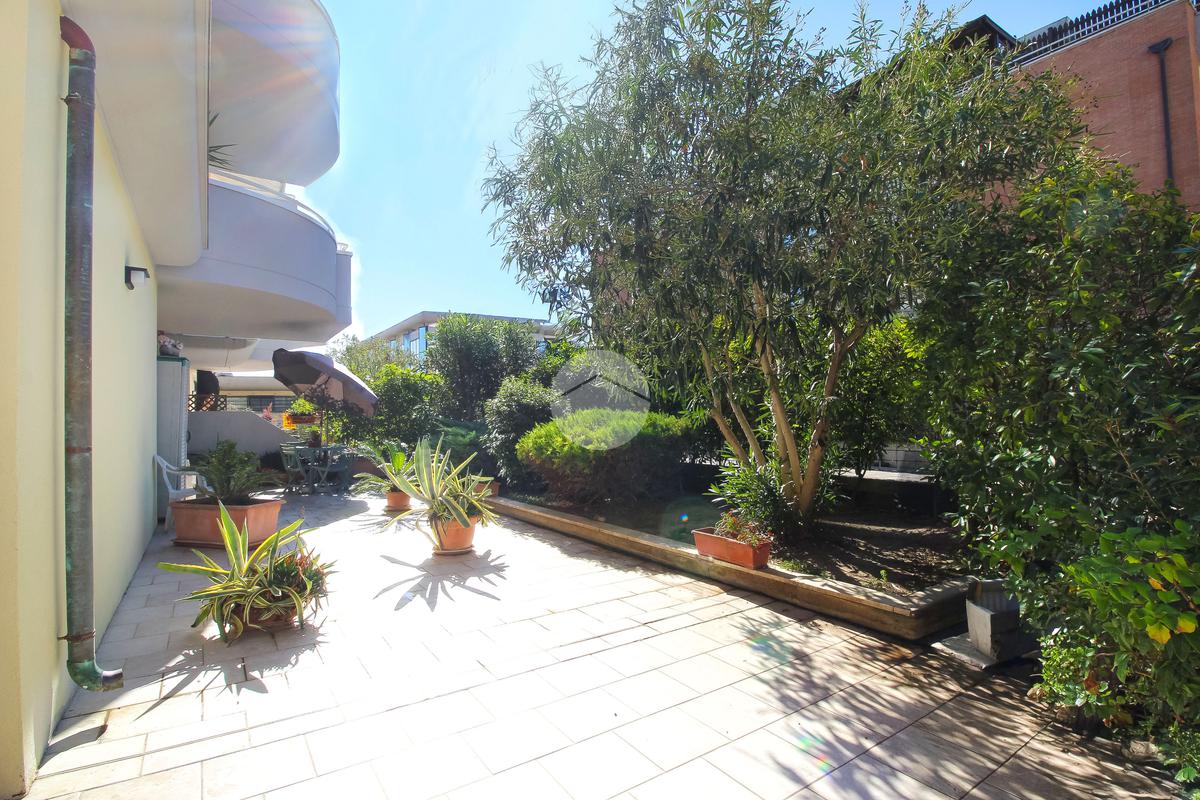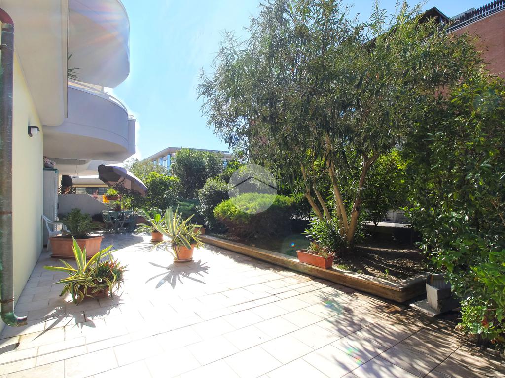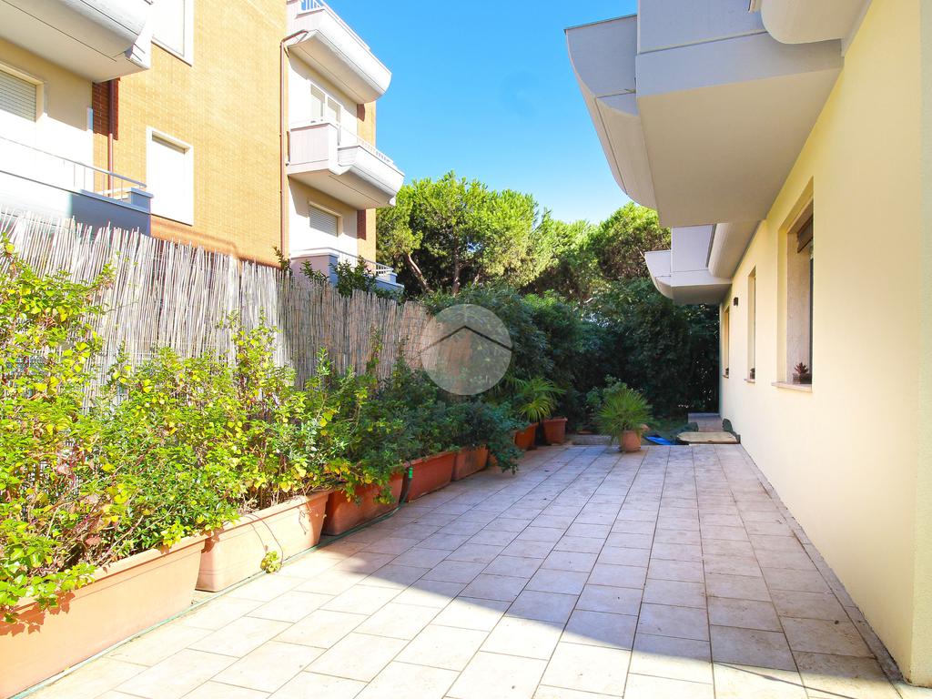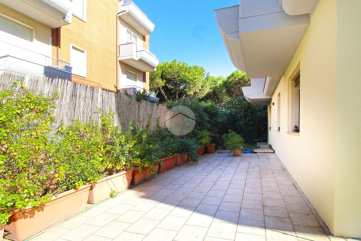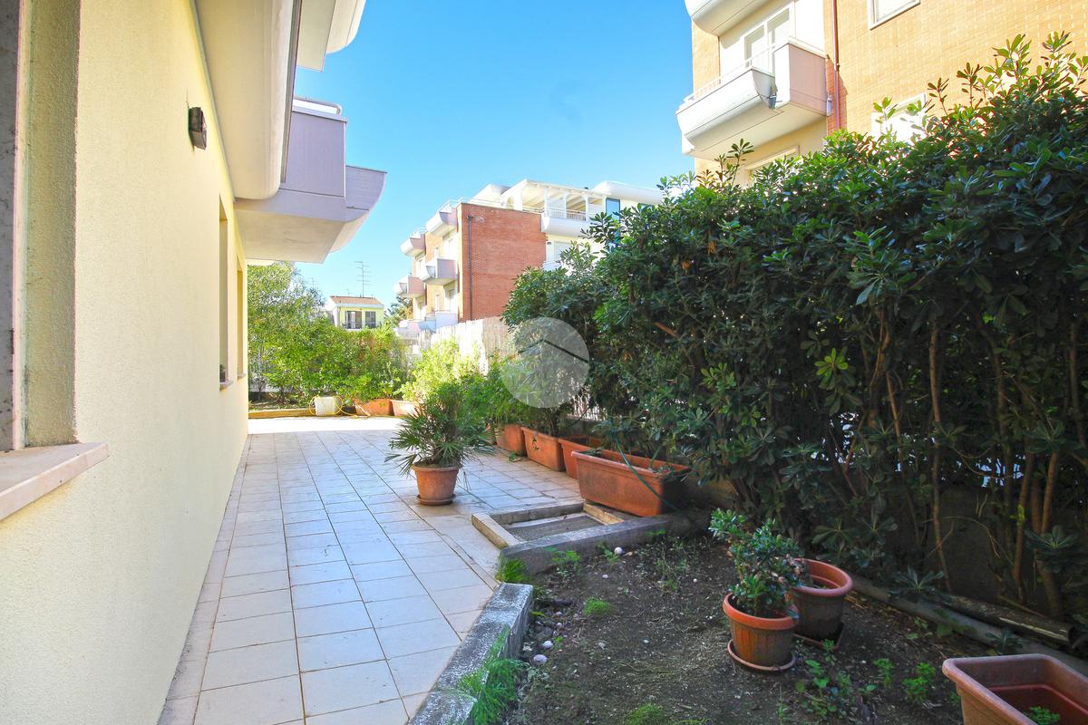 PORTO D'ASCOLI: zona centrale, ampio appartamento al piano terra. Corte con giardino 200 mq circa. Taverna con accesso privato al box auto 37 mq.