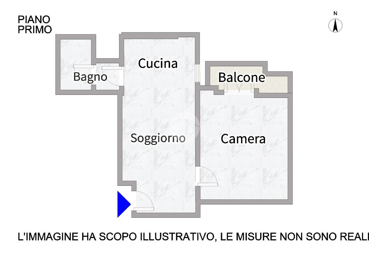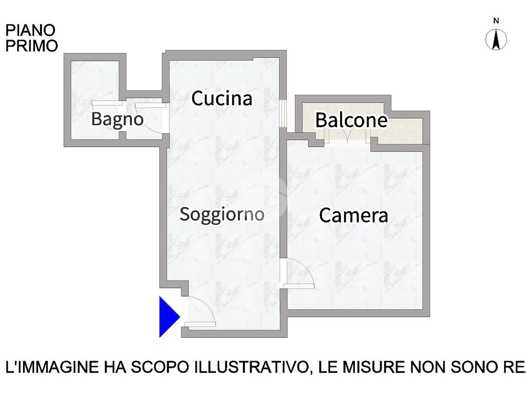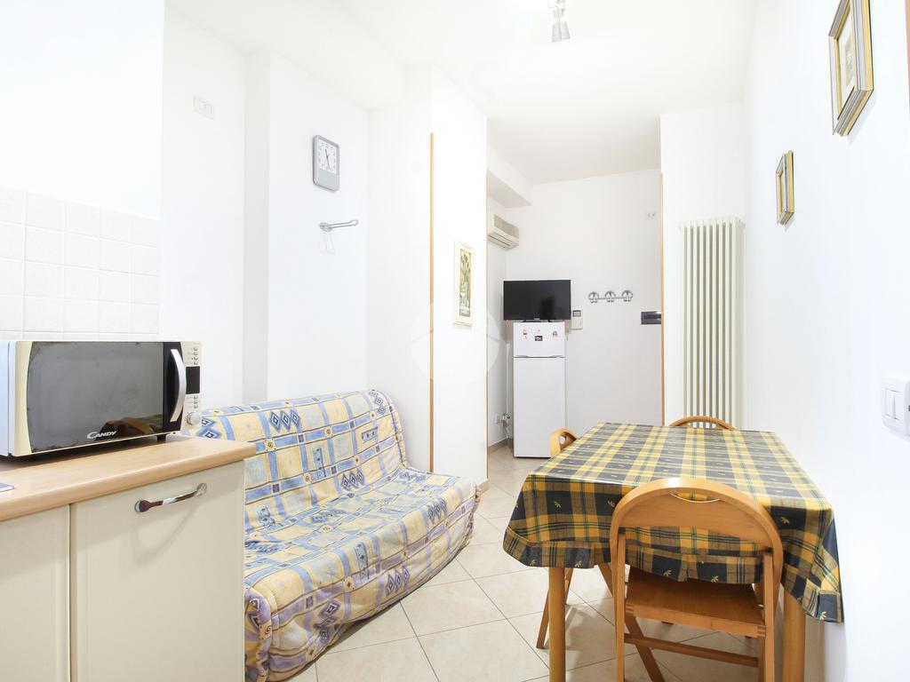 L’abitazione si compone di soggiorno con angolo cottura, camera matrimoniale, bagno con box doccia e balcone.
