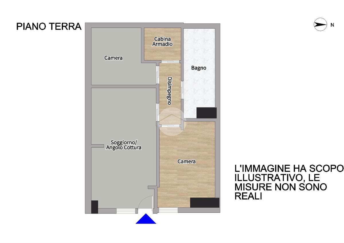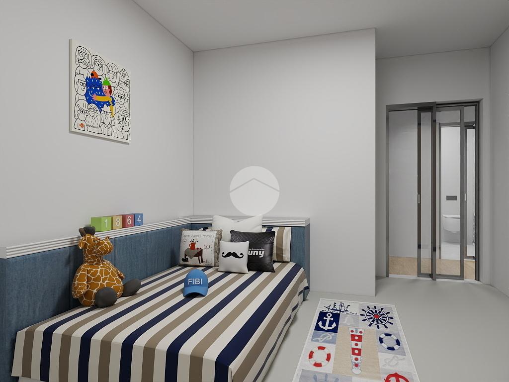 L’abitazione si compone di una luminosa zona living con angolo cottura, camera da letto matrimoniale, cameretta, cabina armadio e bagno con box doccia.