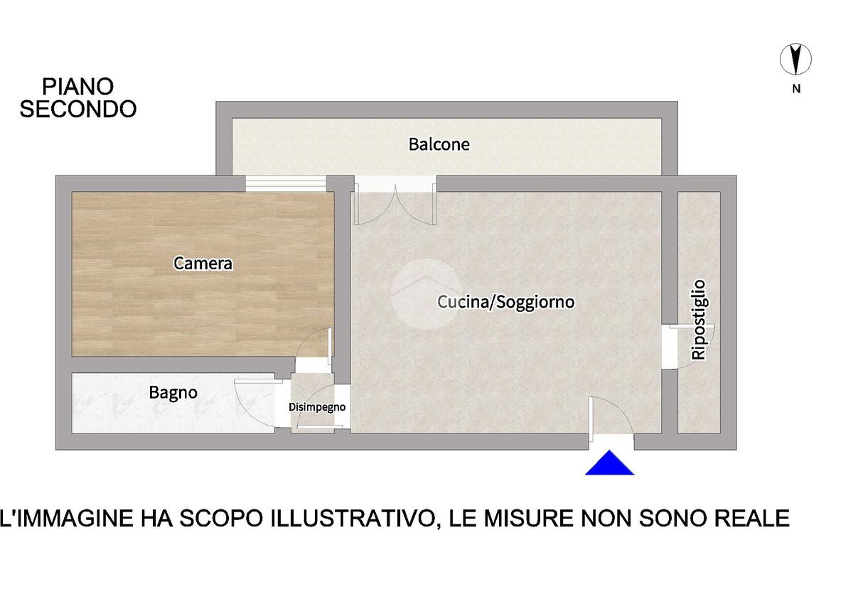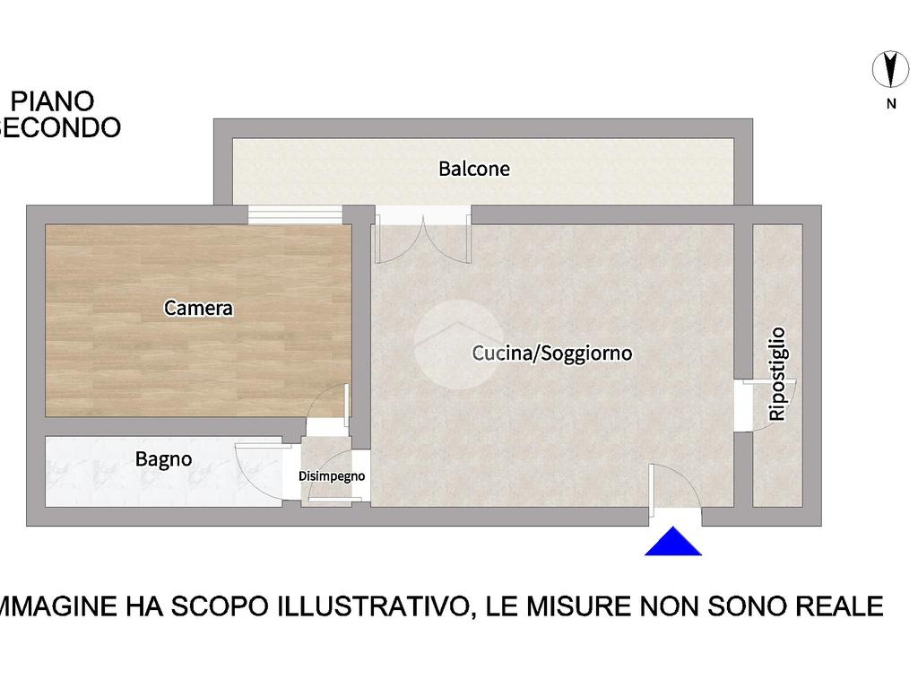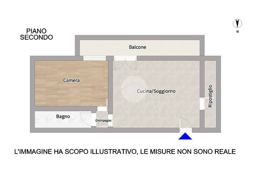L’immobile è composto da zona giorno con angolo cottura, camera matrimoniale, bagno con doccia e ripostiglio.