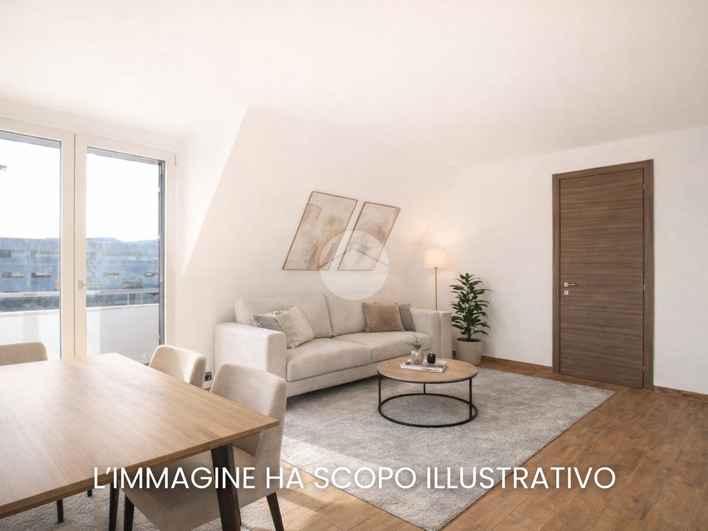 Dalla zona giorno si accede al balcone con esposizione Sud, che garantisce ottima luminosità durante tutta la giornata.