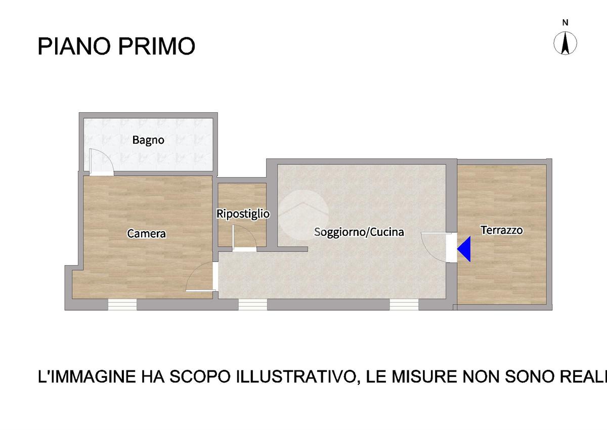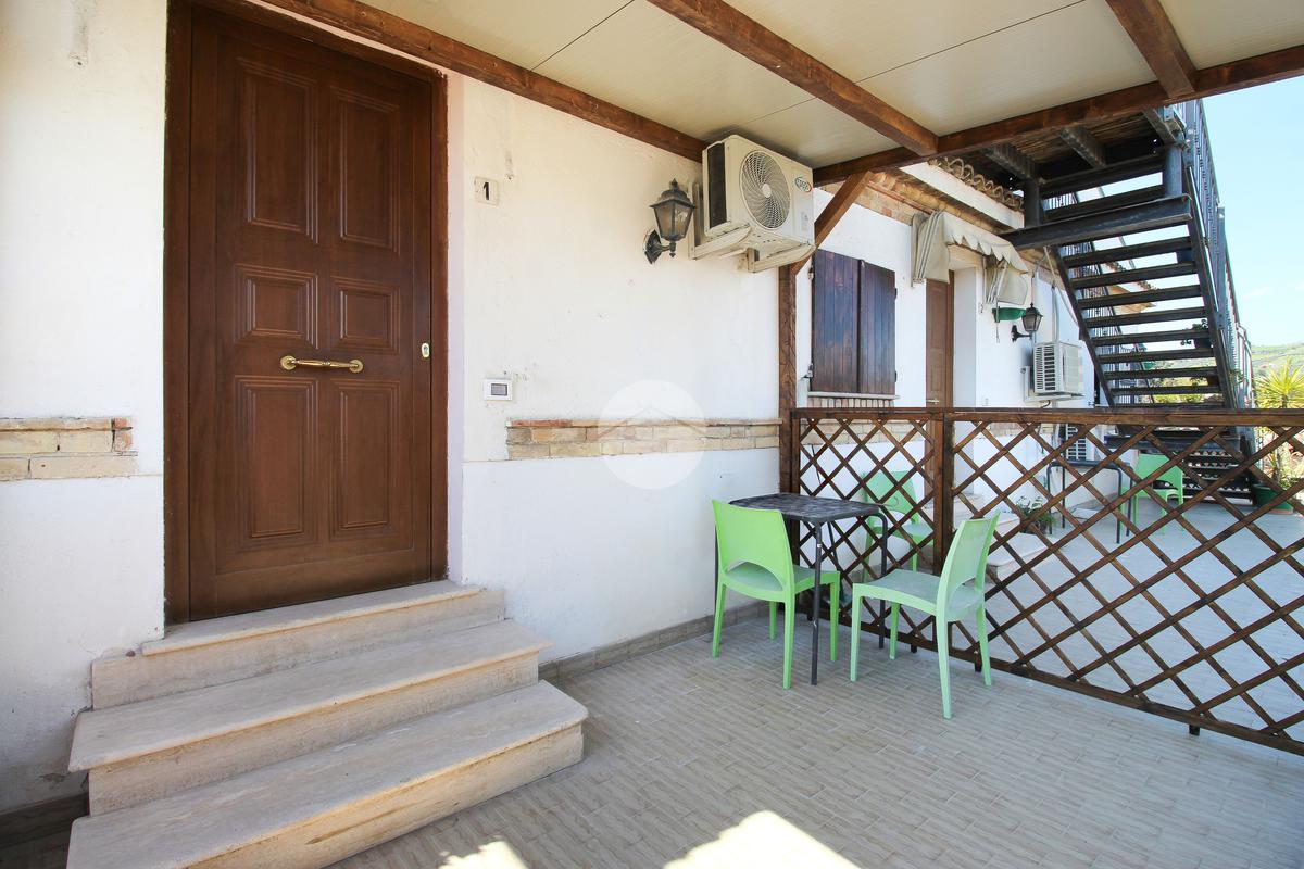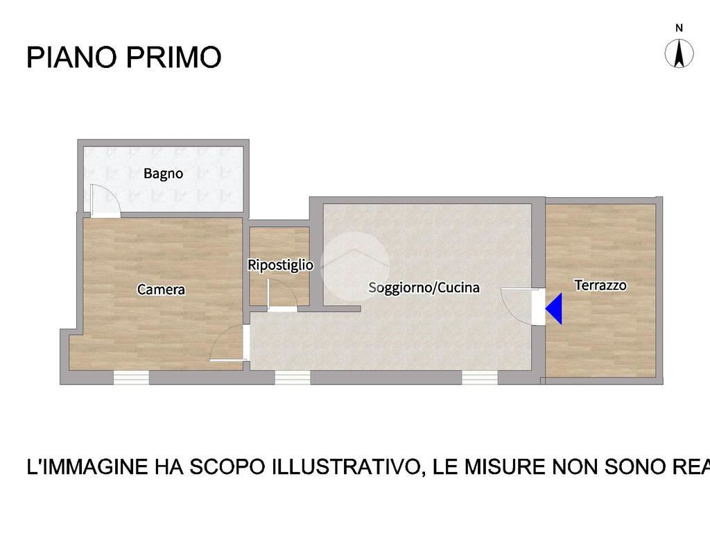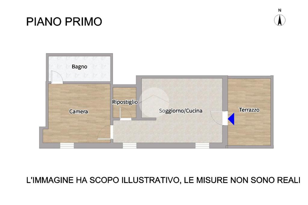 L’accesso avviene tramite una comoda terrazza privata che conduce all’abitazione, composta da soggiorno con angolo cottura, camera matrimoniale, bagno con doccia e pratico ripostiglio.