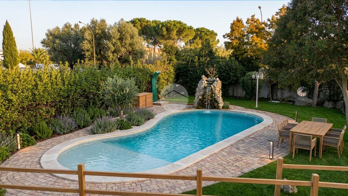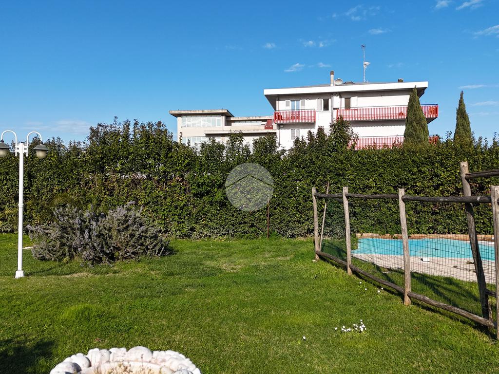La vera particolarità della soluzione è il contesto: un ambiente curato e ricco di comfort, con ampio giardino condominiale, piscina, area barbecue e parcheggi a disposizione dei residenti.