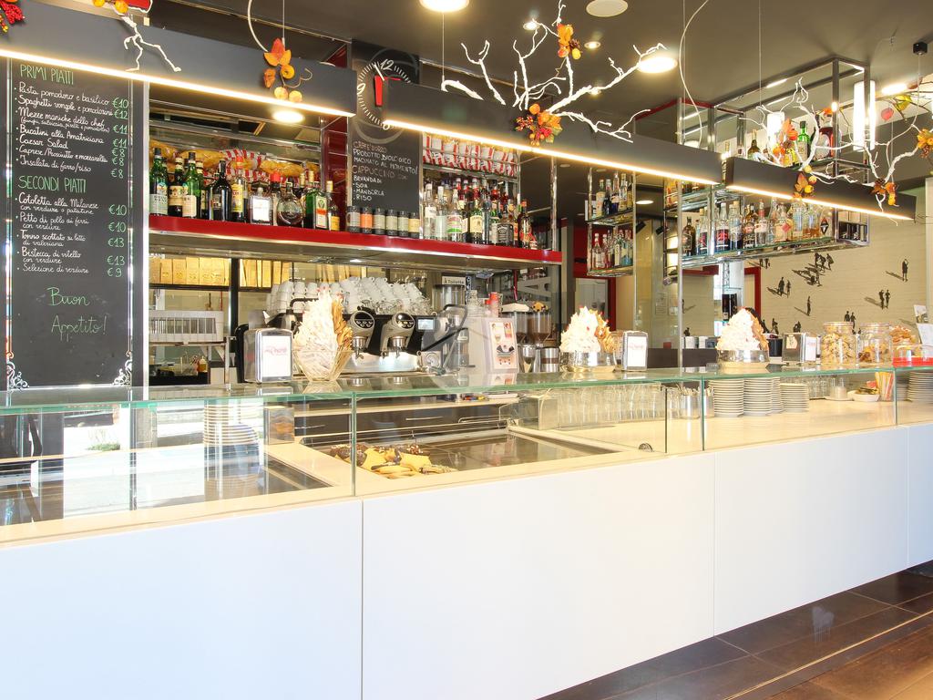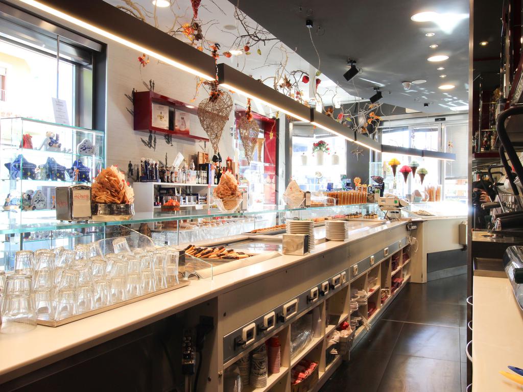 Il locale si presenta ampio, curato e completamente attrezzato, con spazi ben distribuiti tra la zona bar, la sala interna dedicata alla ristorazione e caffetteria ed infine il laboratorio di pasticceria, dotato di tutte le attrezzature necessarie per la produzione propria e terzi.