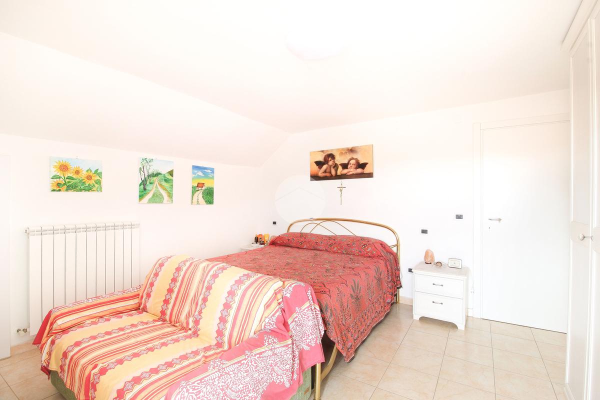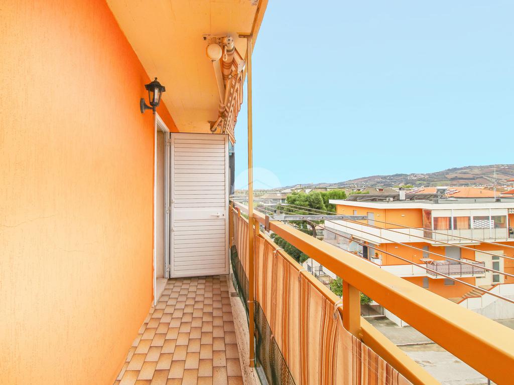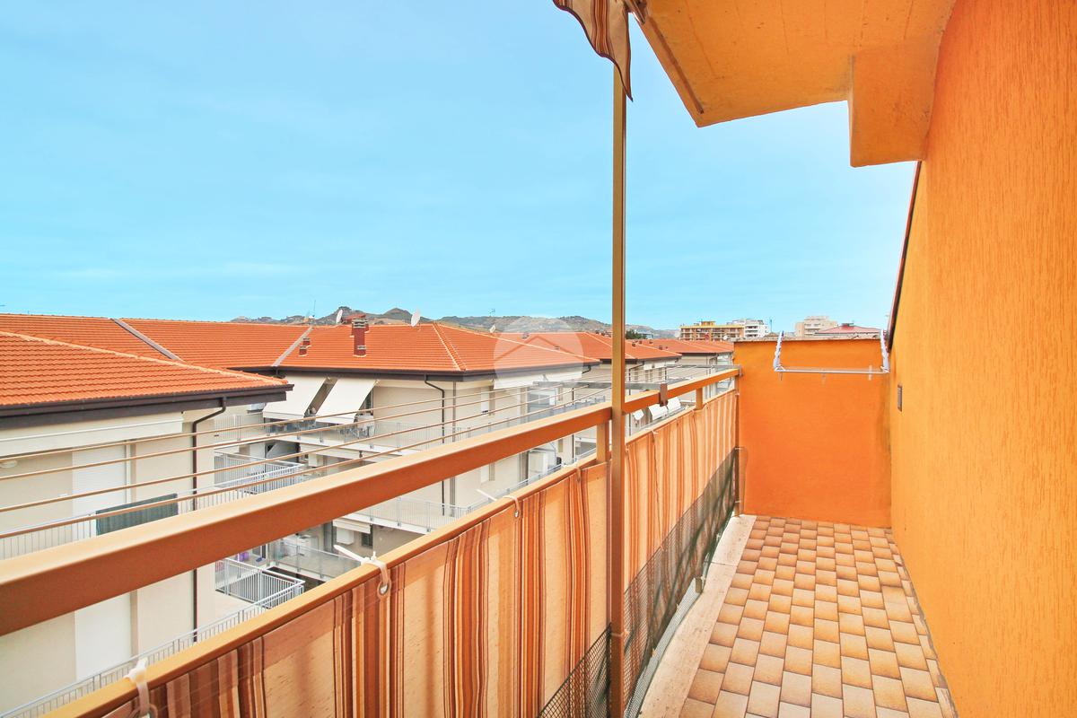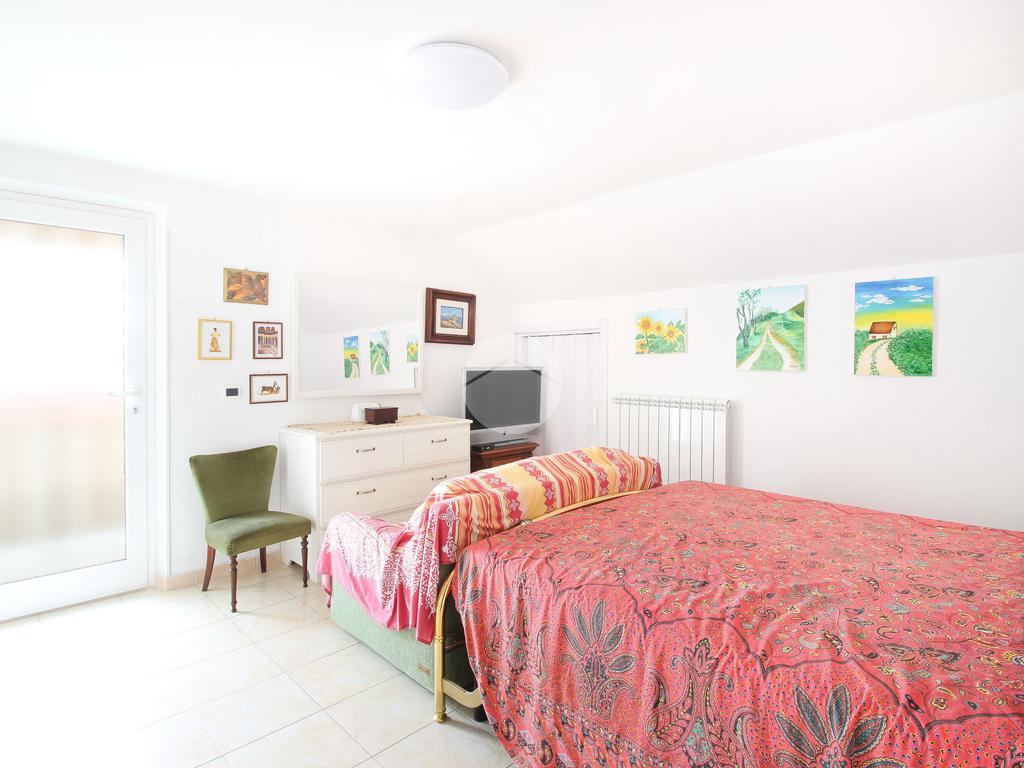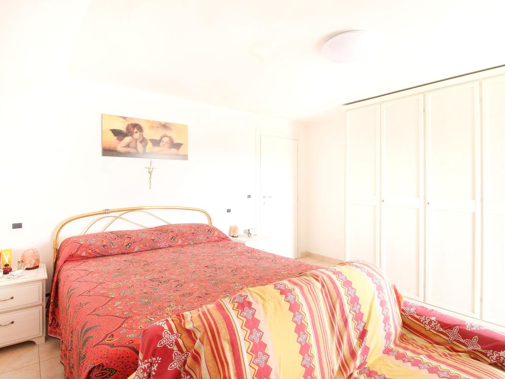 Dalla zona giorno si accede al balcone esposto a Est, da cui è possibile godere di una piacevole vista panoramica fino al mare. La camera da letto matrimoniale dispone di balcone privato.