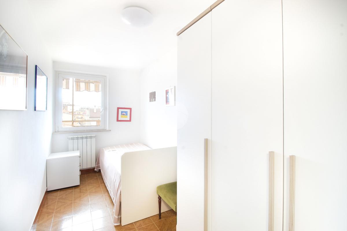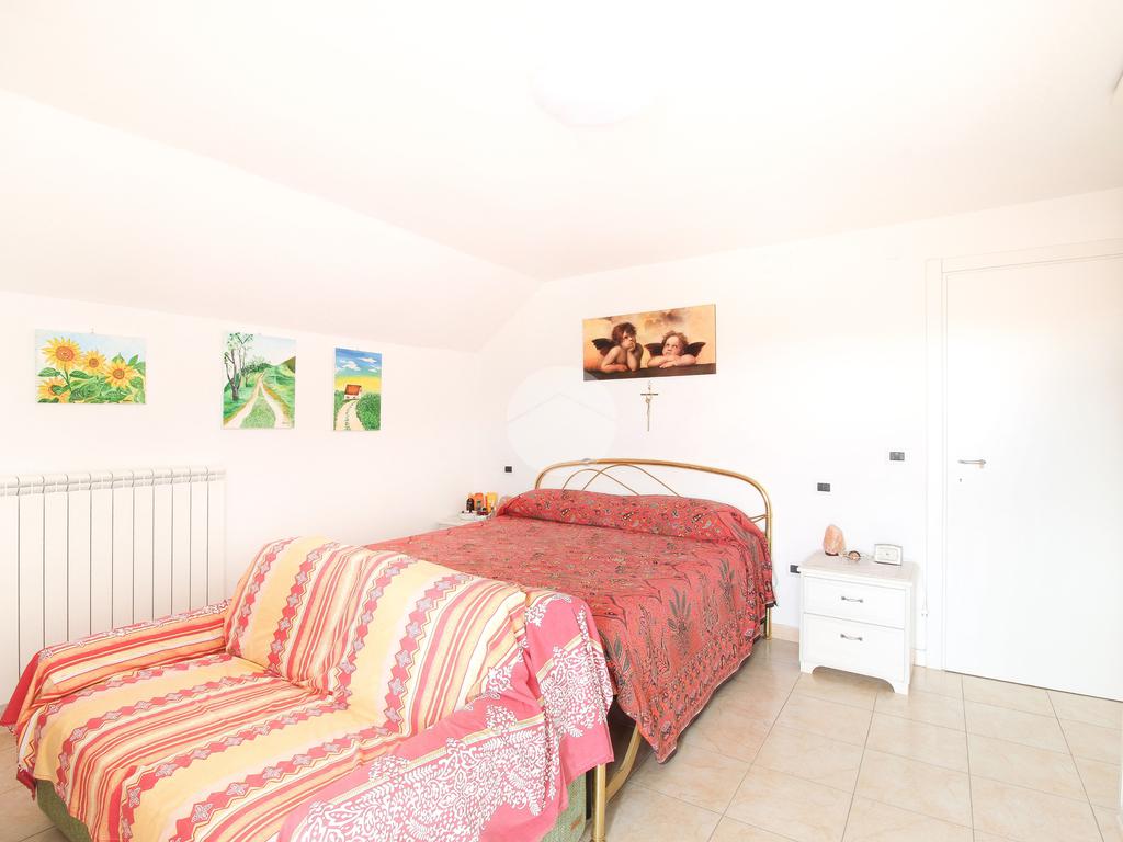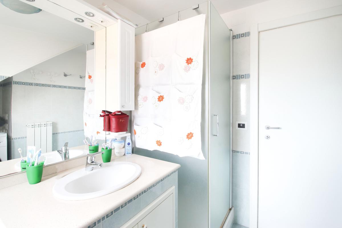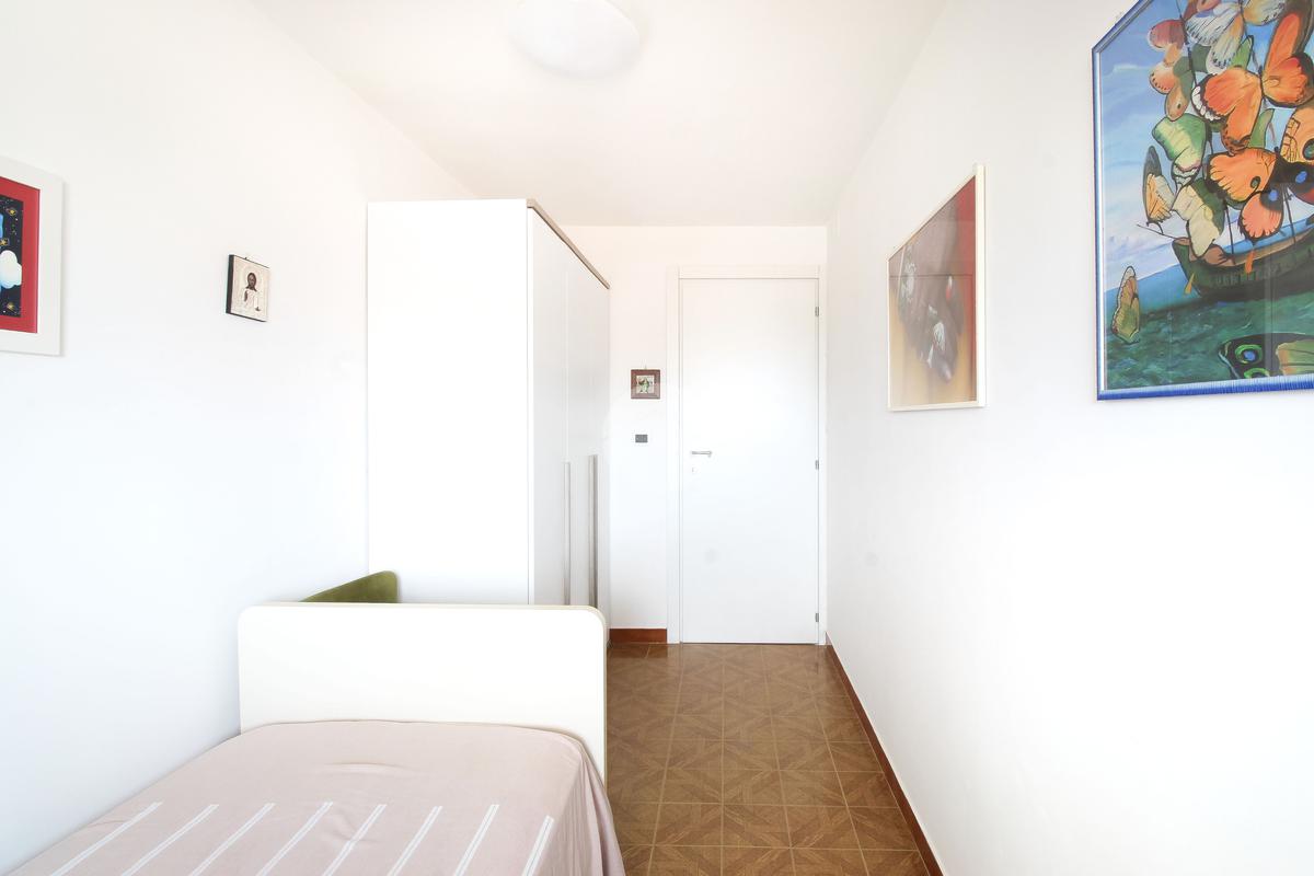 Dalla zona giorno si accede al balcone esposto a Est, da cui è possibile godere di una piacevole vista panoramica fino al mare. La camera da letto matrimoniale dispone di balcone privato.